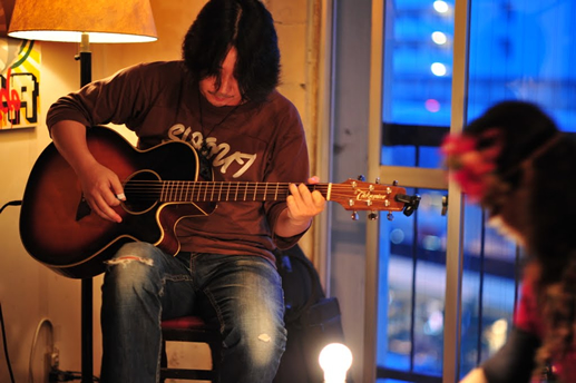 a-bridge にて隔月で開催されているMuKu Party。 GENZはアコースティックバージョンでライブした。 全体的にしっとりしたイベントで雨が降ってた…