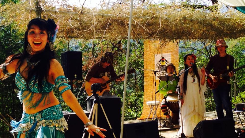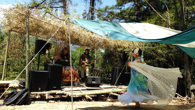 手作りの舞台の屋根からこぼれる太陽がキラキラ眩しかった。