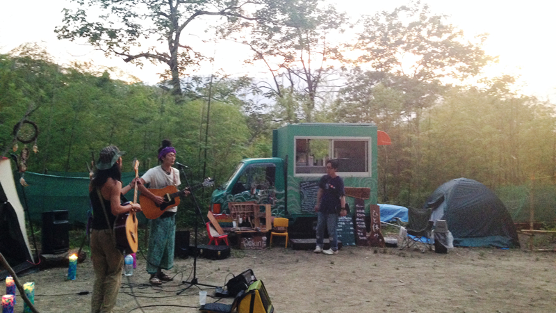 テントをたてて、毛虫と戯れていると、HIROYUKI×島田博樹×サイトーシュンのライブが始まった。
