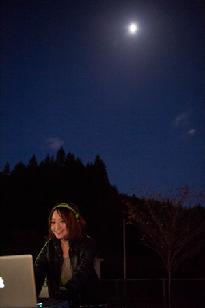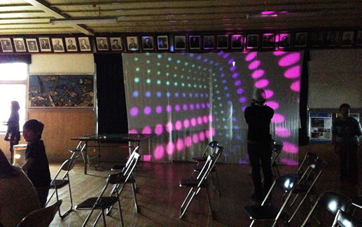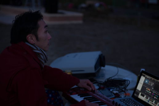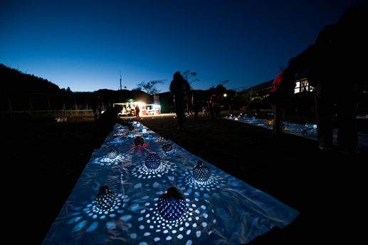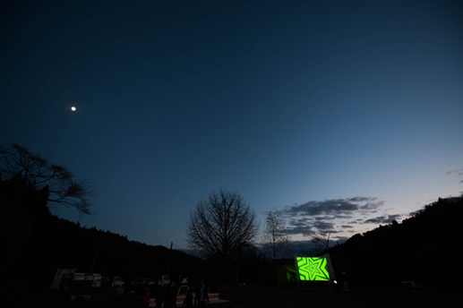 山の小学校の校庭に、月とVJと光のアートと最高の音楽で、