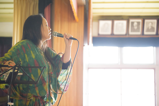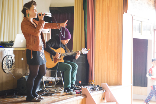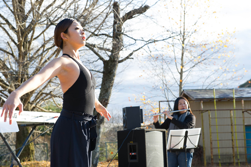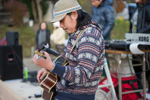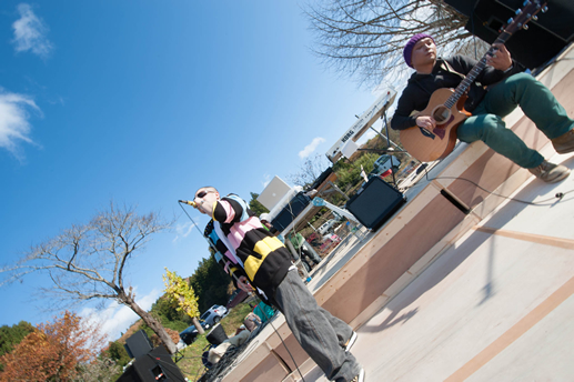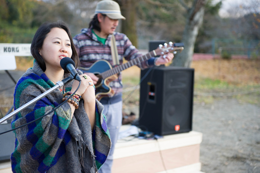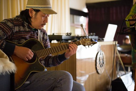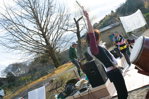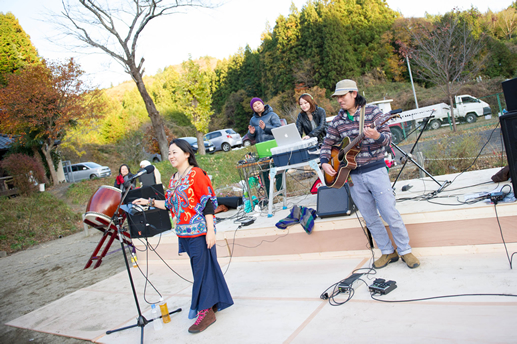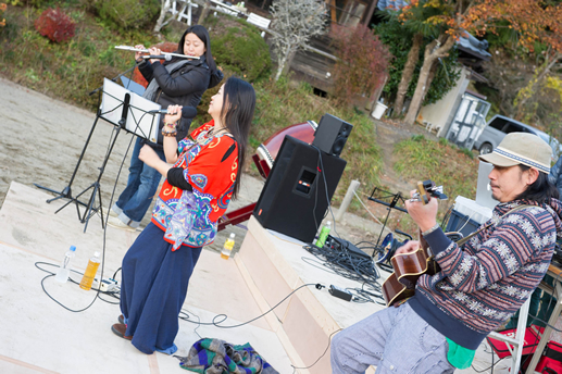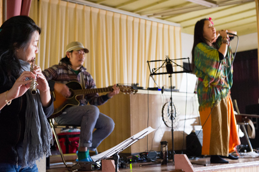 この日は旧上岡小学校(おいしいさとやま学校)の講堂でフリーライブ。