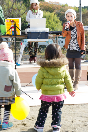 パルコちゃんが大子町のうたを歌ったら、子供たちが喜んで集まってきた。