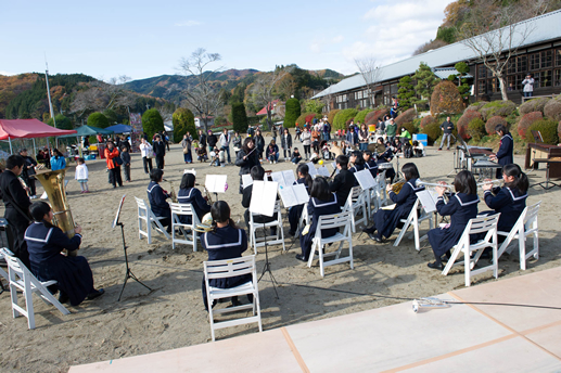紅葉色づく大子町のレトロな木造校舎「大子おやき学校」に、様々なアーティストと食が集合★ 音楽の秋、食の秋、芸術の秋、そして紅葉の秋。