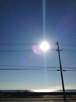 福島の海に太陽が輝いてとても美しかった。
