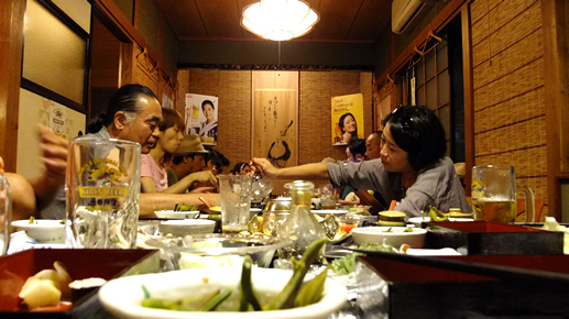 前乗り組の jomonism の面々と、フープダンスのAYUMIさんと、MIRRORBOWLER のみんなとお寿司屋さんに行った。