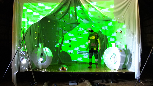 この中は、MIRRORBOWLERの一員でもある極楽ドビーによるデコレーションとVJとで