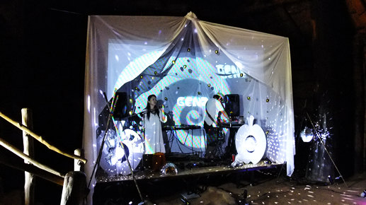 そして、そろそろGENZの出番なので、竪穴式住居のステージ裏に。