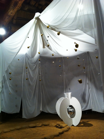 今回わたしたちはこちらの巨大竪穴式住居の中でライブをする。