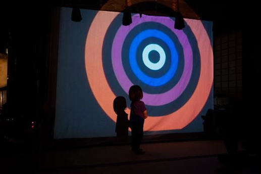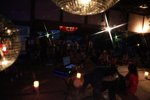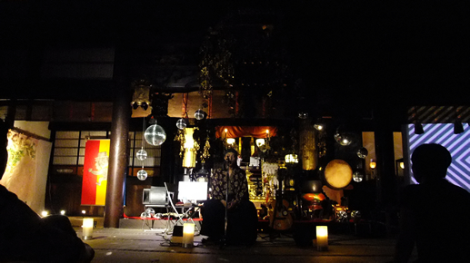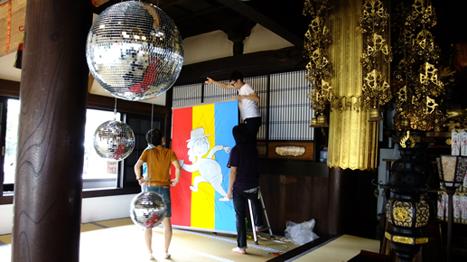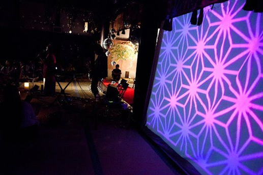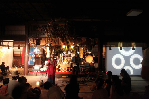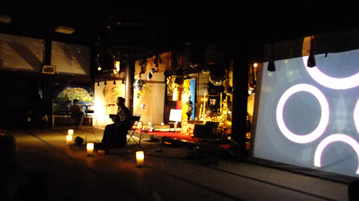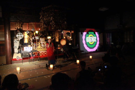 日が暮れて夜が来て、VJ 極楽ドビーの映像が映し出されると、本堂の中はさらに不思議空間に。