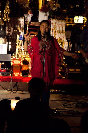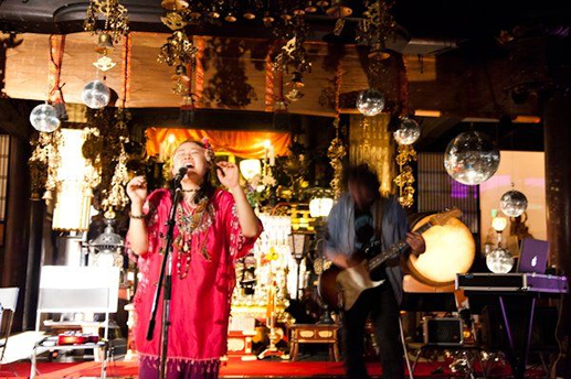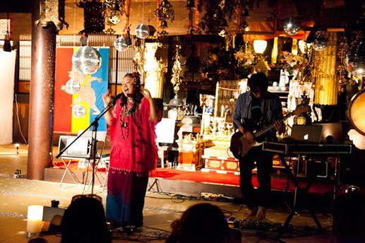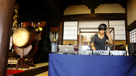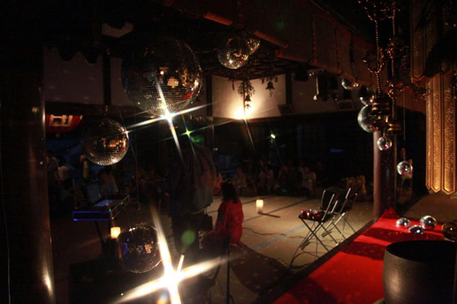 お寺のご本尊の横でDJという不思議な空間。