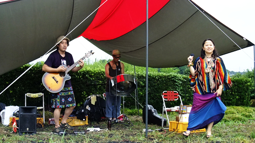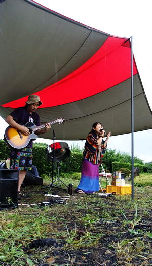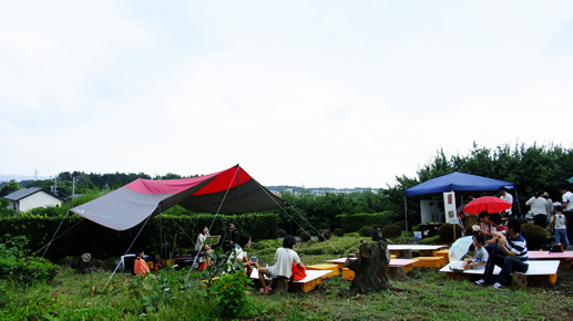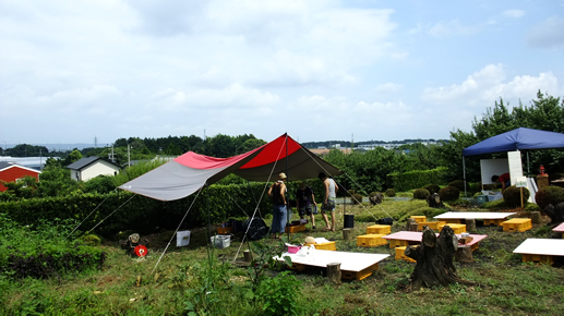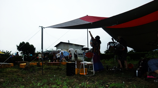 ライブ会場はこちら~というわけで、雨が降りそうだったのでテントを建て。