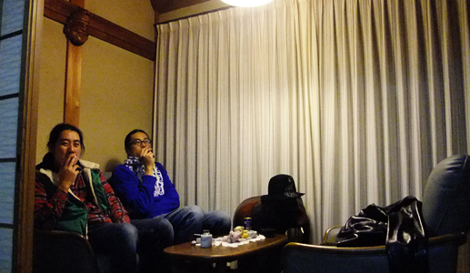 若い子たちが立ちはじめたので、私は座敷童子なみにこっそりイスを移動。