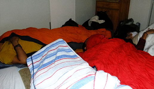 翌朝、いつのまにかみんなが戻ってきていて、 タチさんに起こされた。