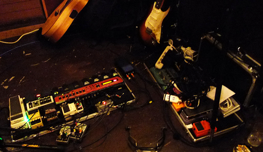 ライブを見たことがない人は想像が難しいかもしれないけど、龍平君は、弾いたり歌ったりした音を、リアルタイムで足元のサンプラーに録音してどんどん音を重ねていって音楽を作っていく。